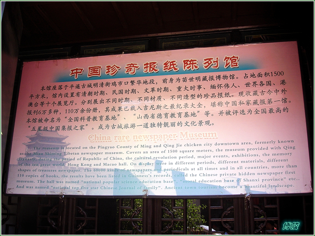 中国珍奇报纸陈列馆,在平遥古城的众多旅游景点中,独树一帜。这里的报纸多,报纸全,收藏展示6万余种,一百一十多万份,有清代的… [